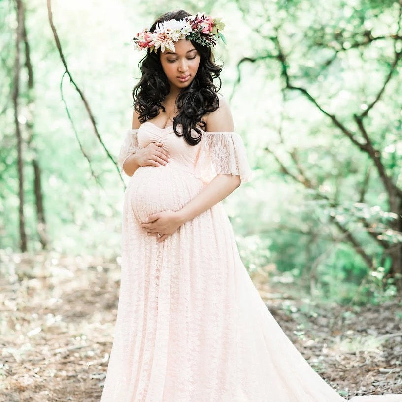 - El encaje es elástico, tiene la parte superior de novia, volantes con hombro descubierto, manga corta, longitud completa con cola y totalmente forrado para evitar que se desvíe.
